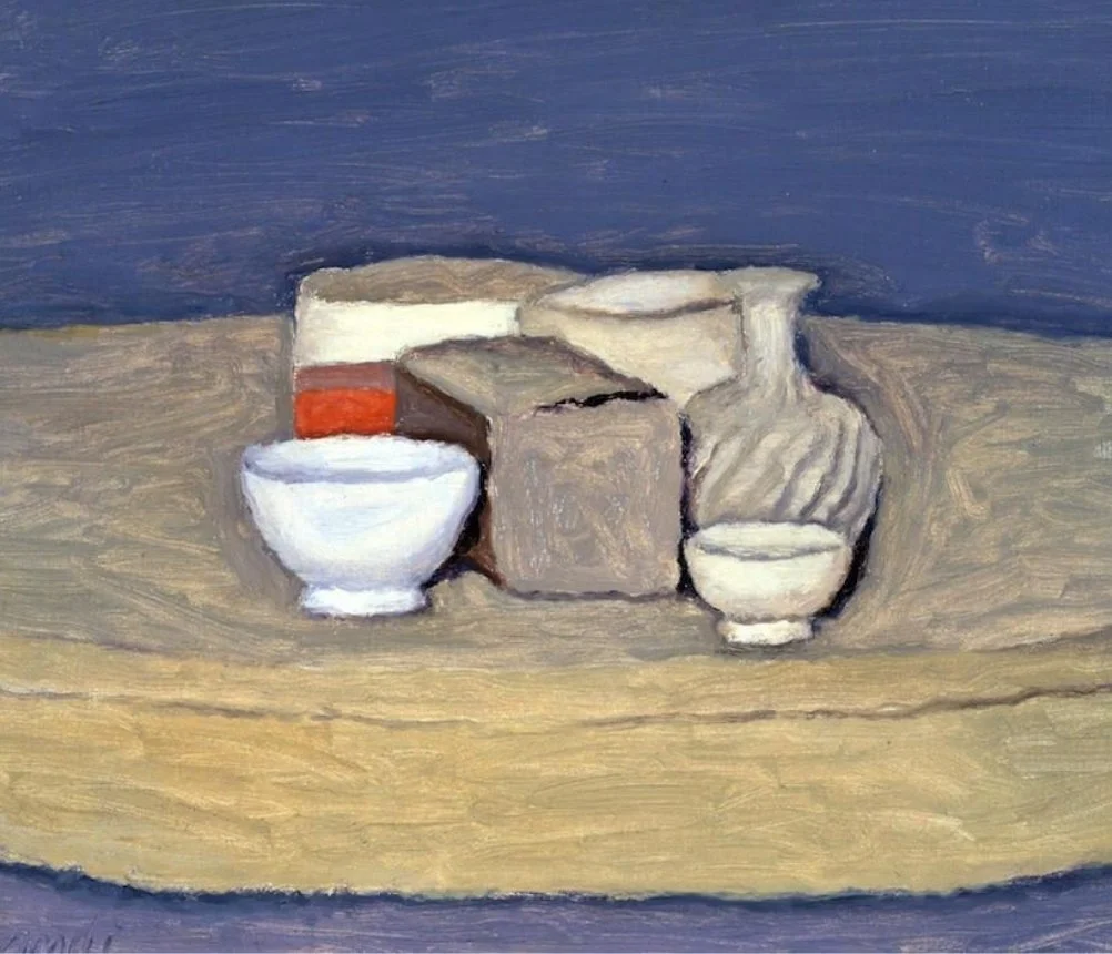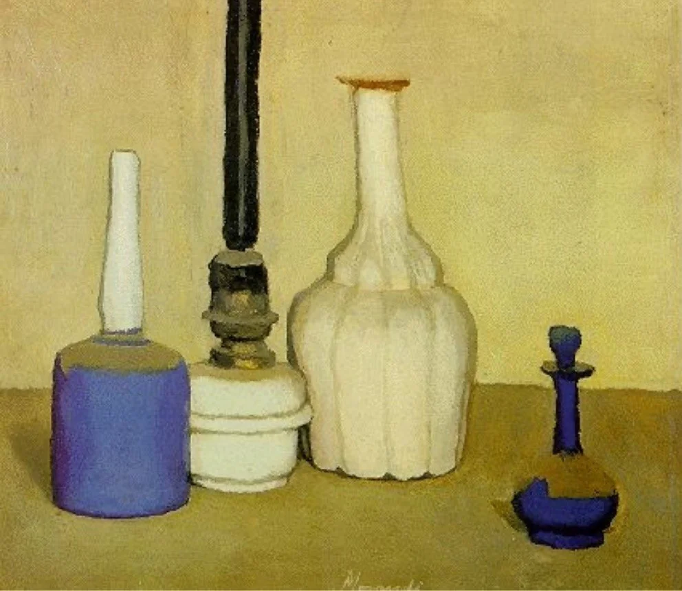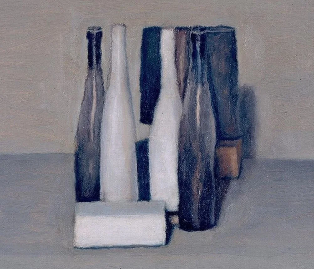 莫蘭迪以低彩度、細膩內斂的靜物畫聞名,他的作品看似簡單,卻在微妙的灰階、色溫與空間關係中,展現高度成熟的美感判斷。他的畫面節奏安靜而穩定,非常適合作為培養油畫基礎觀察力的起點。