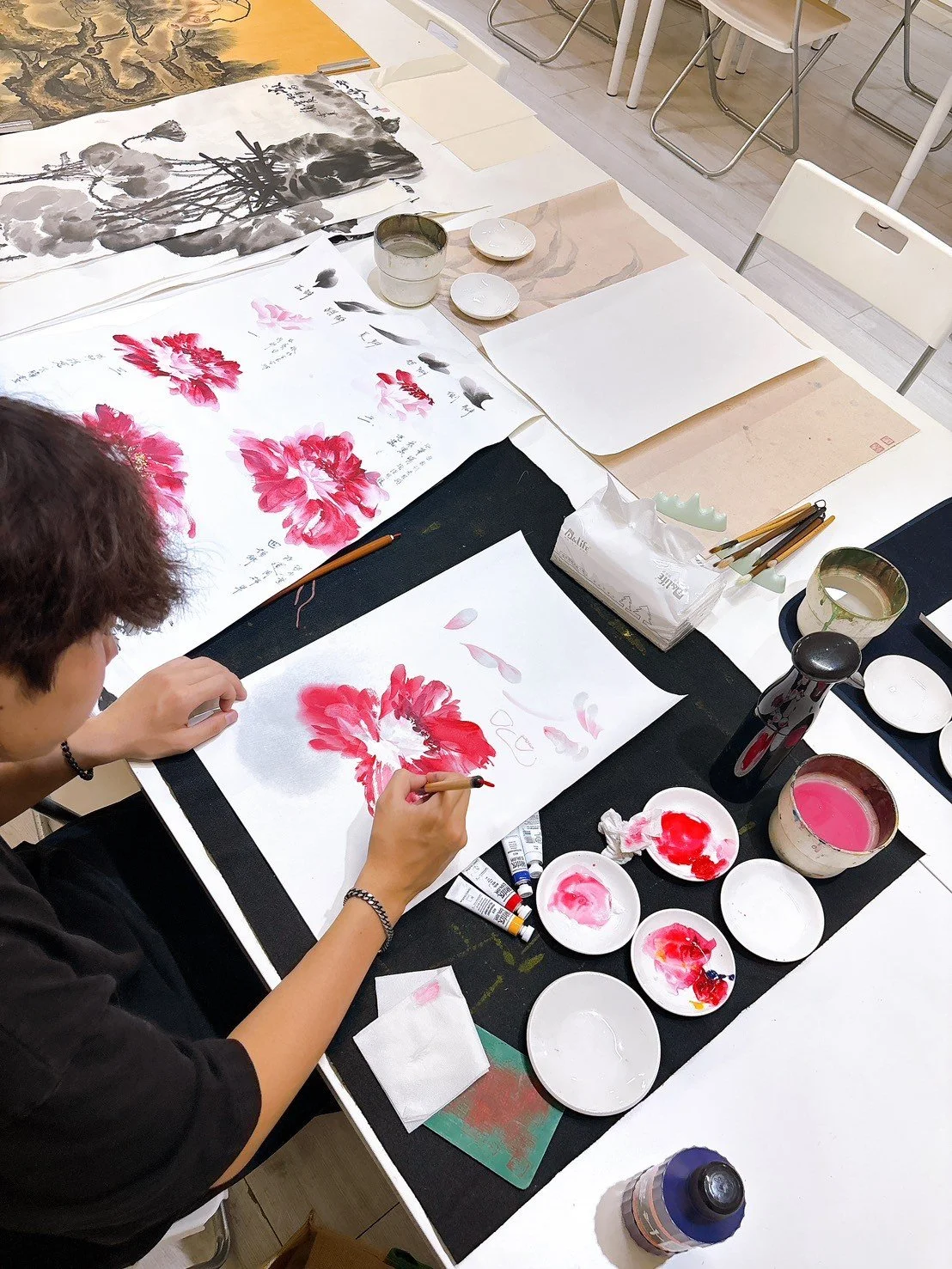 「每堂課結合具象花鳥主題,傳授寫意技法與意境營造,讓學員在墨與彩之間,感受詩意人生。